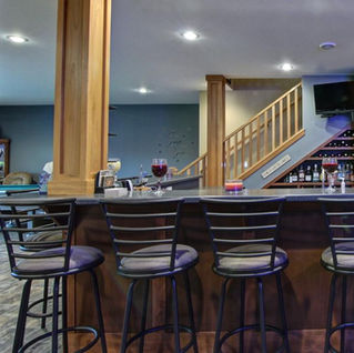 This roomy open concept interior features an accenting stone corner fireplace and detailed trim with custom cabinetry and stair railings. Upper and lower levels are finished with lots of living space to enjoy and entertain.